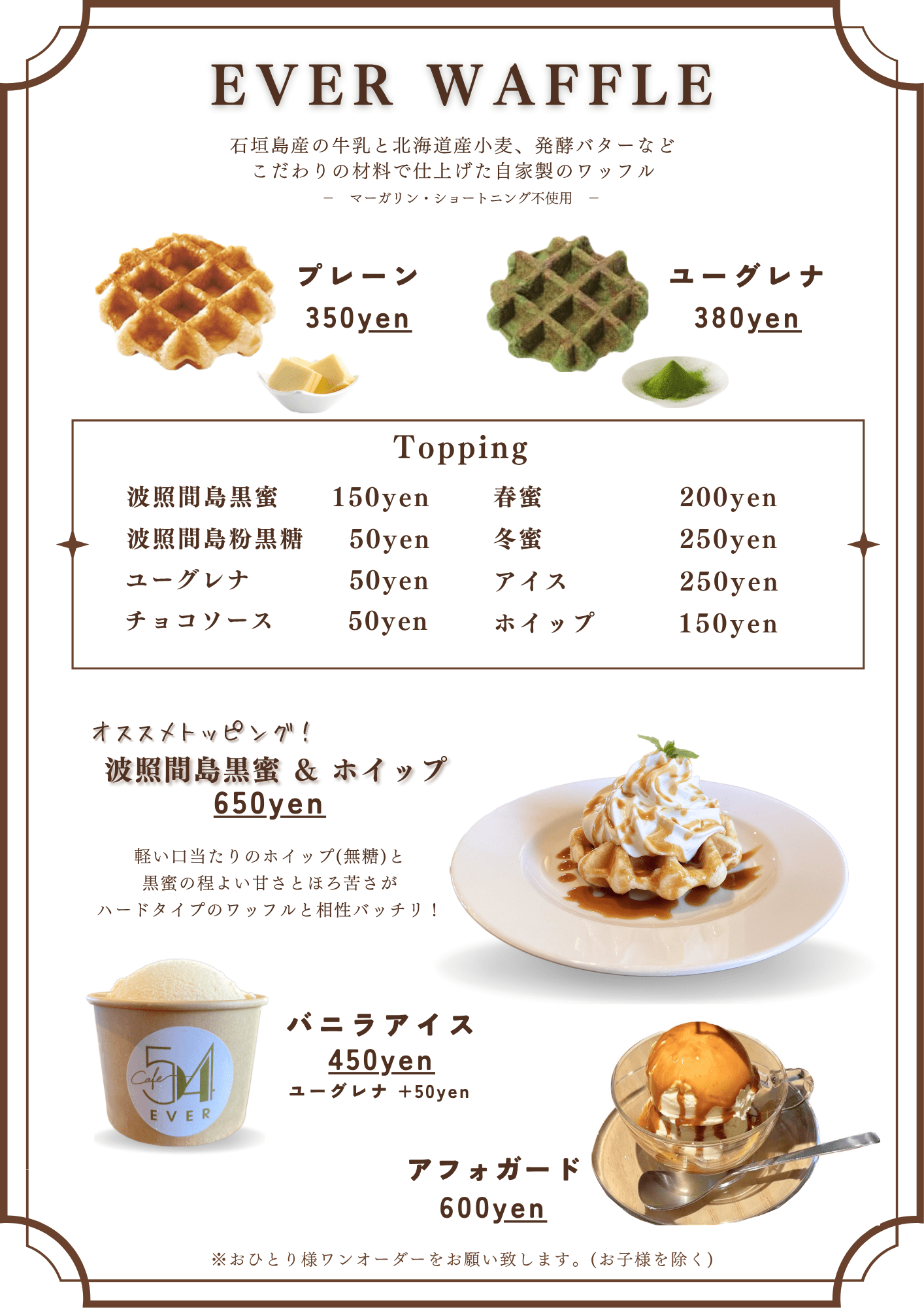 グループ会社「八重山ゲンキ乳業」の美味しい牛乳を使用したラテや、地元の素材を使用したフードメニューを提供いたします。