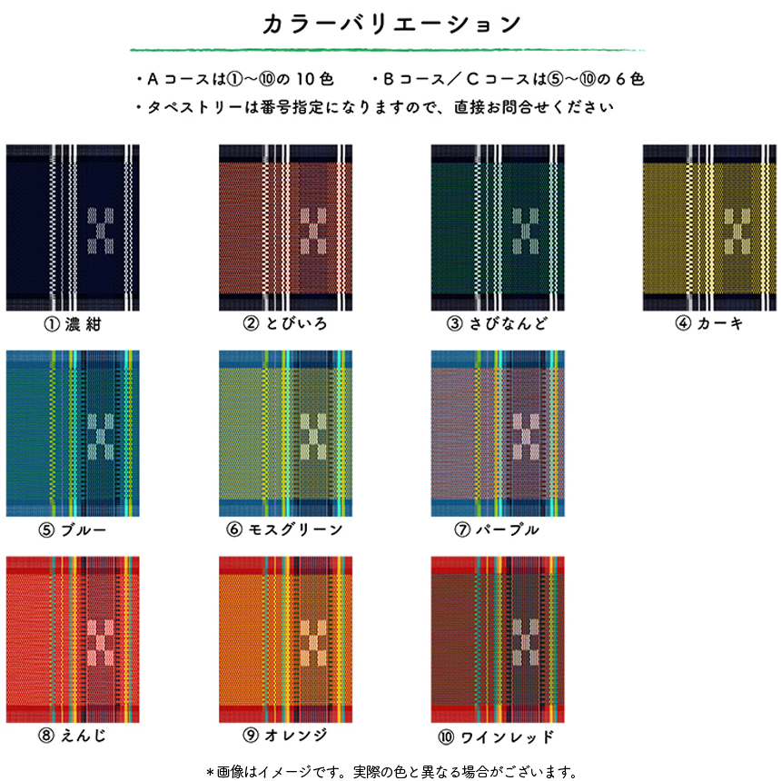 | D | タペストリー | 約39×90 | 3~4時間 | 9:30または13:00 (※各1名様限定 ) | 10,000円 |
