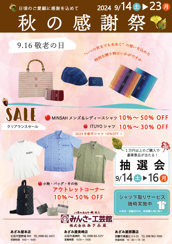 9月14日(土)~23日(月)本店・美崎店・那覇店にて「秋の感謝祭」を開催いたします。