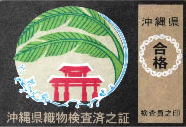 沖縄県伝統工芸振興条例及び同施行規則に基づき沖縄県が検査し、合格した織物に貼付されるマークです。