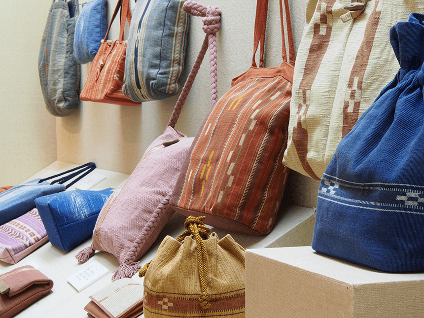 綿の風合いと、独特なミンサー絣を大切にしながら、古い中にも南国の自然をモチーフとした豊かな色彩やデザインし、帯やバッグ類、シャツや雑貨小物、インテリアなど生活文化用品としての様々な製品を生産しています。